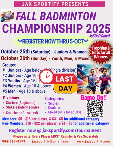 Indoor Badminton, Pickleball, Table-Tennis, Zumba, & Yoga